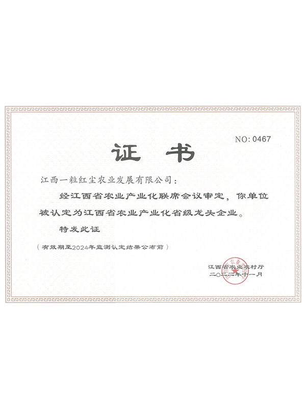 通過一系列扎實(shí)有效的工作措施,我們企業(yè)(江西一粒紅塵農(nóng)業(yè)發(fā)展有限公司)在農(nóng)產(chǎn)品質(zhì)量安全方面取得了顯著成效。未來,我們將繼
